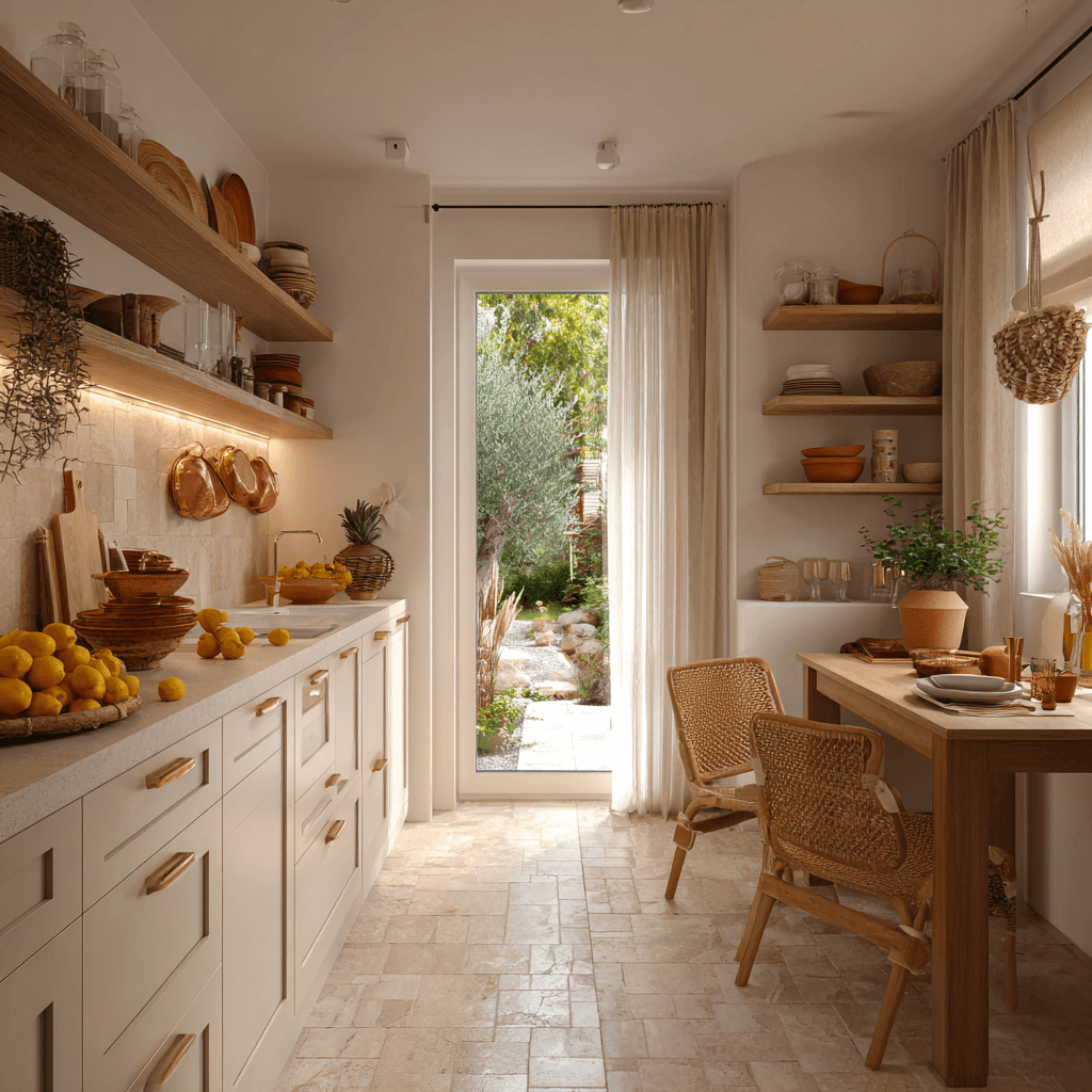 Die Küche verbindet Funktionalität mit moderner Leichtigkeit. Klare Linien, viel Tageslicht und kurze Wege machen den Alltag komfortabel. Der direkte Zugang nach draußen sorgt für Offenheit und ein angenehmes Raumklima. Ideal für gemeinsames Kochen und Genießen.